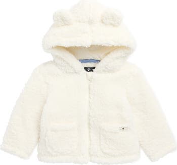 Your little cub will stay toasty through the chilly season in a superplush faux-shearling jacket designed with a cozy hood topped with adorable bear ears.