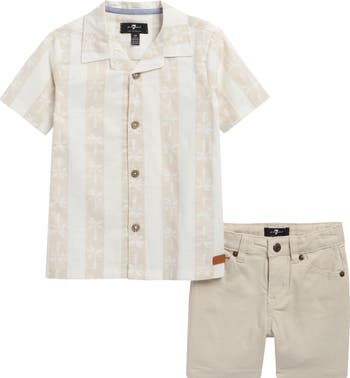 They will be ready for warm-weather days in this set featuring a button-up camp shirt and twill shorts cut from a breathable cotton-and-linen blend.