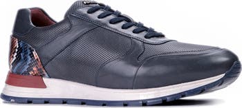 A snake-patterned collar adds vibrancy to a lace-up sneaker with a silhouette that adds a touch of sporty styling to your ensemble.