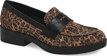 Scalloped detailing lends a whimsical twist to the tongue of this dapper moc-toe penny loafer grounded on a chunky stacked heel.