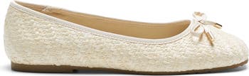 A delicate bow tops this ballet flat shaped by a square toe for a bit of contemporary flair.