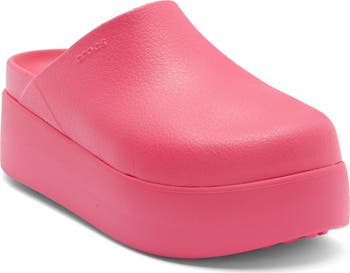A monochrome palette adds to the sleek design of this minimalist clog cushioned with iconic CROCS comfort and boosted by a lofty platform.