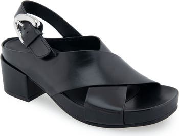 Sleek leather straps crisscross the sleek silhouette of this slingback sandal elevated by a block heel for a stylish twist.