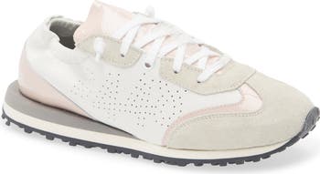 Upgrade your kicks with this sporty leather sneaker featuring a streamlined profile with suede accents and an elasticized topline for a comfortable fit.