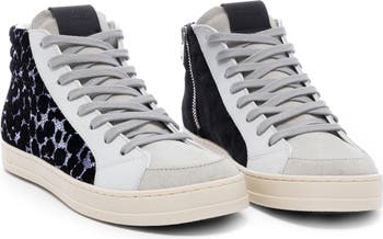 Glittery panels add unexpected shine to this street-savvy high top trimmed in suede and secured with a quick side zip closure.