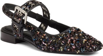 Allover sequins and bouclé fabric add pops of color and shine to this outfit-elevating slingback flat.