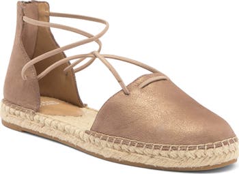 Elastic cords flex and form to your fancy footwork in this wear-all-day flat with an espadrille footbed perfect for sunny seasons.