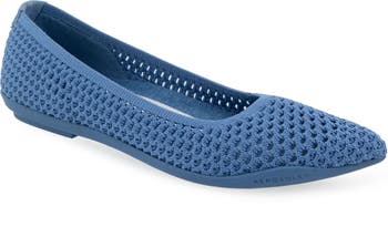 A pointed toe punctuates an airy open-knit flat constructed with memory foam cushioning for easy-wear comfort.