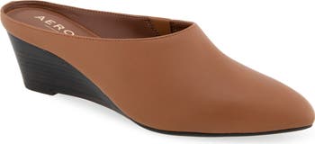 A soft pointy toe and integrated wedge heel create a flattering profile on a leather mule grounded by an OrthoLite® footbed and Diamond Flex sole for superior comfort and impact absorption.