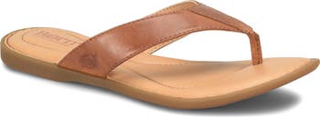 Smooth leather straps shape a cushioned flip-flop sandal grounded by a cushioned footbed.