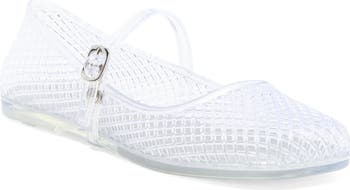 A slim Mary Jane strap defines the silhouette of this charming flat crafted from flexible jelly material with a breezy diamond-mesh design that’s perfect for sunny-day adventures.