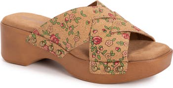Interwoven leather straps create a rustic sandal that moves with you while memory foam cushioning and a platform wedge heel ensure lightweight comfort.