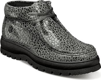 Suede composition with an animal print define this chukka boot fitted with a comfort-cushioned footbed.