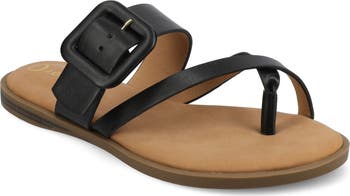Crisscrossing straps create the dynamic silhouette of this breezy slide sandal fitted with a comfort-cushioned footbed.