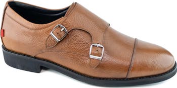 Gleaming buckles add a touch of shine to a handcrafted loafer made from supple calfskin leather with traditional stitching and a flexible rubber sole.