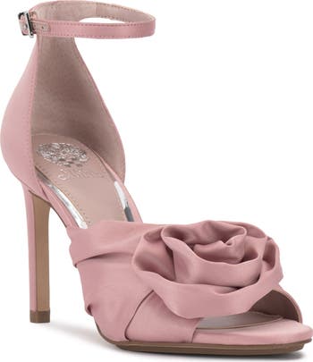 A slender ankle strap secures your foot in this towering sandal topped by a budding rosette for a trend-right look that's always charming.