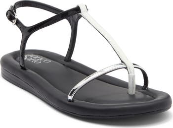 Svelte straps form a barely-there caged upper on this ankle-strap sandal grounded by a comfort-cushioned footbed.