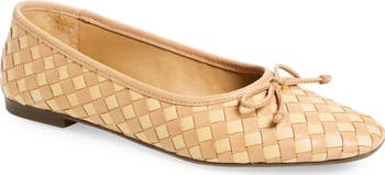 A woven mix of leathers brings subtle texture to this classic ballet flat topped with a delicate bow at the toe for a charming finish.