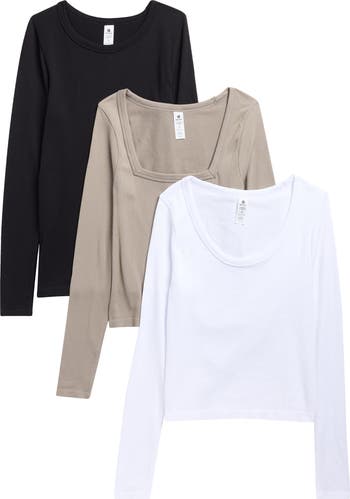 I was looking for some long sleeve basics and these are great! Soft, stretchy material and I like the different necklines on each. Might get more colors!