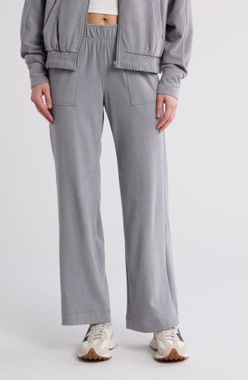 Kick back and relax in wide-leg pull-on pants constructed from a soft, stretchy knit for superior comfort.