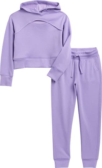 Watch your favorite kiddo sprint in this little athletic set featuring a cutout hoodie and matching joggers.