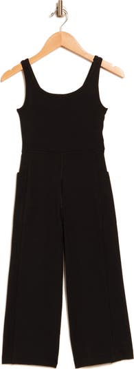 Elevate your kiddo's contemporary wardrobe with this stretchy romper finished with wide legs and a sleeveless bodice.