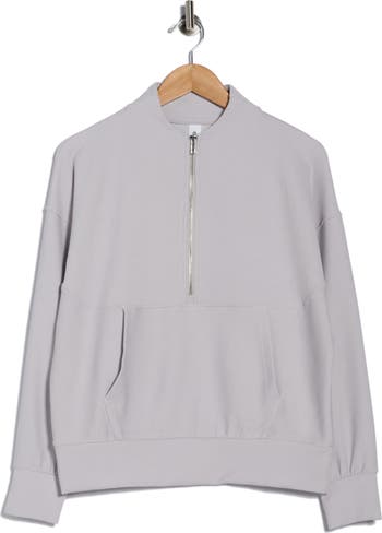 A partial zipper offers easy layering of a signature pullover covered in a ribbed texture for on-trend appeal.