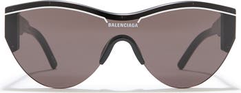 Complete any outfit in style with this shield framed pair of sunglasses that are crafted in Italy for chic eye protection.