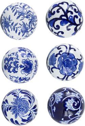 Add a touch of classic charm with these blue-and-white decorative orbs that are made from fine porcelain.