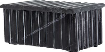 A uniquely fluted design adds to the modern allure of this storage box crafted entirely from swirled marble that masterfully combines earthy charm with sculptural interest.