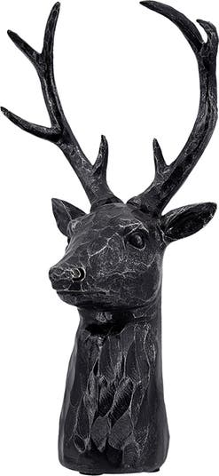 Combine earthy charm with modern elegance in your home decor with this resin bust of a deer featuring intricate, elongated antlers.