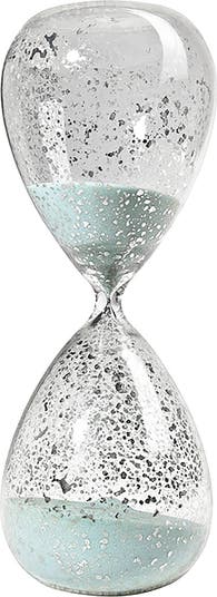 Elegant curves and sparkling antiqued glass distinguish a modern hourglass that brings a fresh take on a classic design to your home decor.