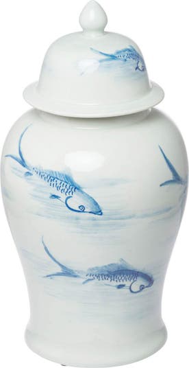 The finial-topped lid is removable to gracefully display a fresh or dried bouquet in this beautifully decorated porcelain jar.