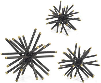 Elevate any space in your home with this set of inky spiky metal statues tipped with goldtone accents for a contemporary feel.