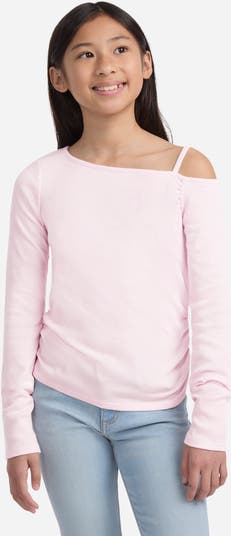 They'll love the edgy, asymmetric design of this supersoft cotton-blend top featuring shirred sides and an embroidered logo at the cuff.