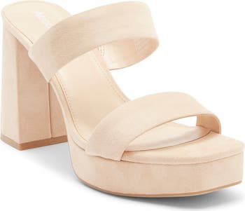 Wide vamp straps deliver a secure fit to a squared sandal set on a sturdy platform and chunky block heel for a modest lift.