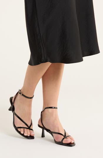 Step into bold style with these striking sandals framed by slender straps and supported by a flared heel for a statement finish.