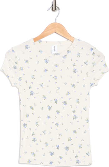 Pointelle stitching lends subtle sweetness to a figure-hugging T-shirt cut from a comfy cotton blend for ease on casual outings.