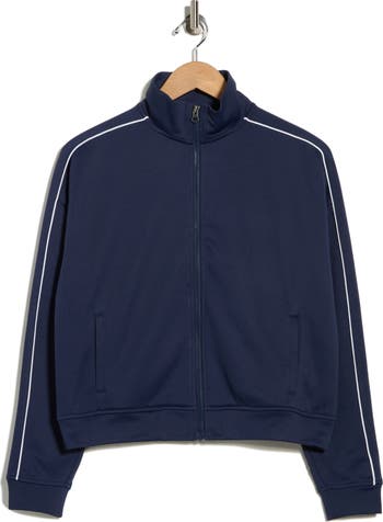 Elevate your athleisure game with this comfortable track jacket styled with contrast piping and front welt pockets.