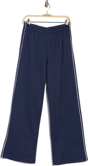 Kick back for the weekend in these wide-leg track pants framed by sleek contrast piping and handy pockets.