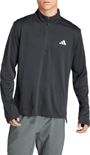 A branded quarter-zip pullover crafted from recycled polyester is the perfect layering piece whether warming up muscles for a workout or lounging at home.