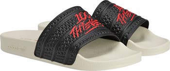 A cushioned footbed delivers cloud-like comfort to a slide sandal topped with a textured strap designed in collaboration with 100 Thieves.
