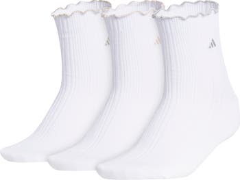 Stock up on everyday essentials with this trio of crew socks edged by frilly ruffles and complete with tonal branding.
