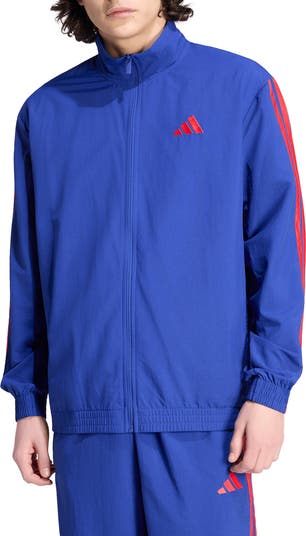 A logo-marked windbreaker is topped with a sporty stand collar for added coverage when the weather can't make up it's mind.