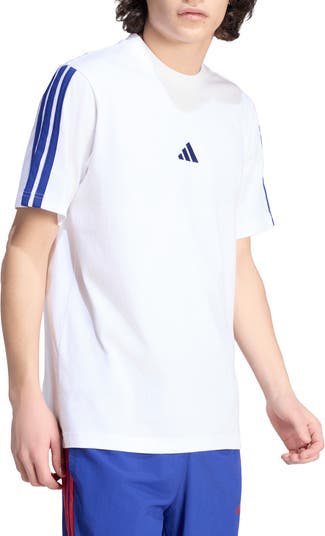 A chest motif and 3-Stripes branding off the sleeves gives classic Adidas vibes to this sporty crewneck T-shirt cut from soft, breathable fabric.