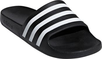 An iconic trio of stripes decorate this lightweight slide sandal.