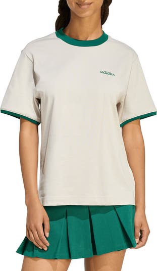 Show off sporty style in this classic ringer T-shirt featuring an embroidered logo at the chest and bold ribbed trim.