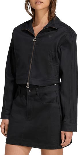 A modern take on an iconic look, this two-way zip jacket is cut from soft twill in a relaxed, cropped silhouette.