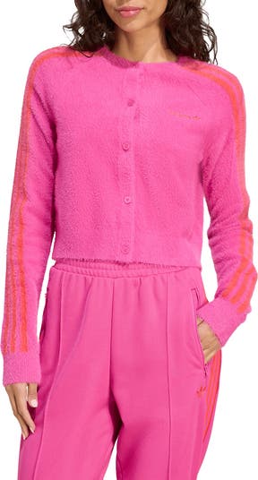 Heritage 3-Stripes and logos lend pops of contrast to this fluffy cardigan that shows a softer side of the sporty label.