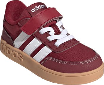 Bold stripes, a roomy perforated toe and a cushy insole update a signature mid-top sneaker designed to keep up with your kiddo on the court or the playground.